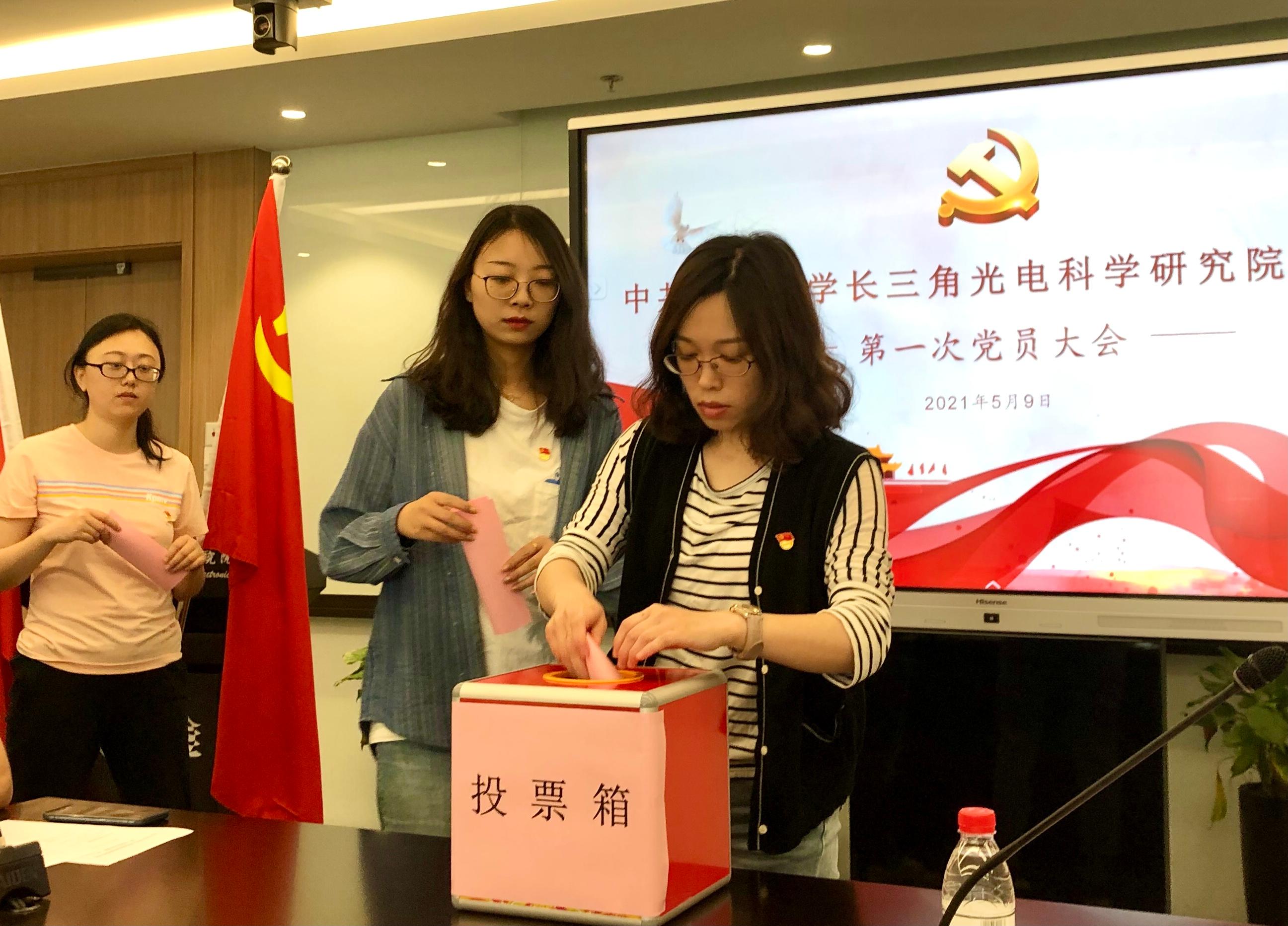 根据会议议程,首先由通创投公司党委副书记黄培丰同志宣读了《关于同意成立北京大学长三角光电科学研究院党支部的批复》。接着,根据规定程序投票选举产生党支部第一届支部委员会委员及书记:孙泉、陈月萌和顾晓雯3位同志当选为光电院党支部第一届支部委员会委员,孙泉同志当选为支部书记。当选的支部书记孙泉同志代表支部委员会作了表态:感谢通创投公司党委和光电院支部党员同志的信任,将全力以赴做好党支部各项工作,充分发挥党支部在光电院各项工作中的战斗堡垒作用。