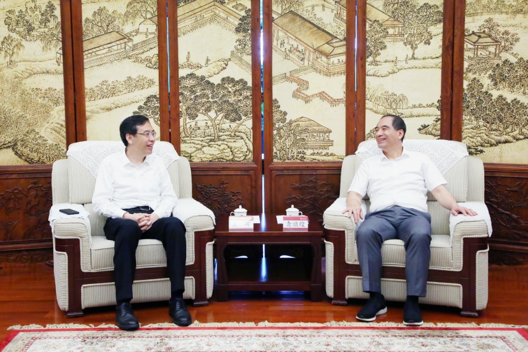 2022年7月4日上午,南通市委书记王晖一行访问北京大学。北京大学校长、中国科学院院士龚旗煌在临湖轩会见王晖一行。
