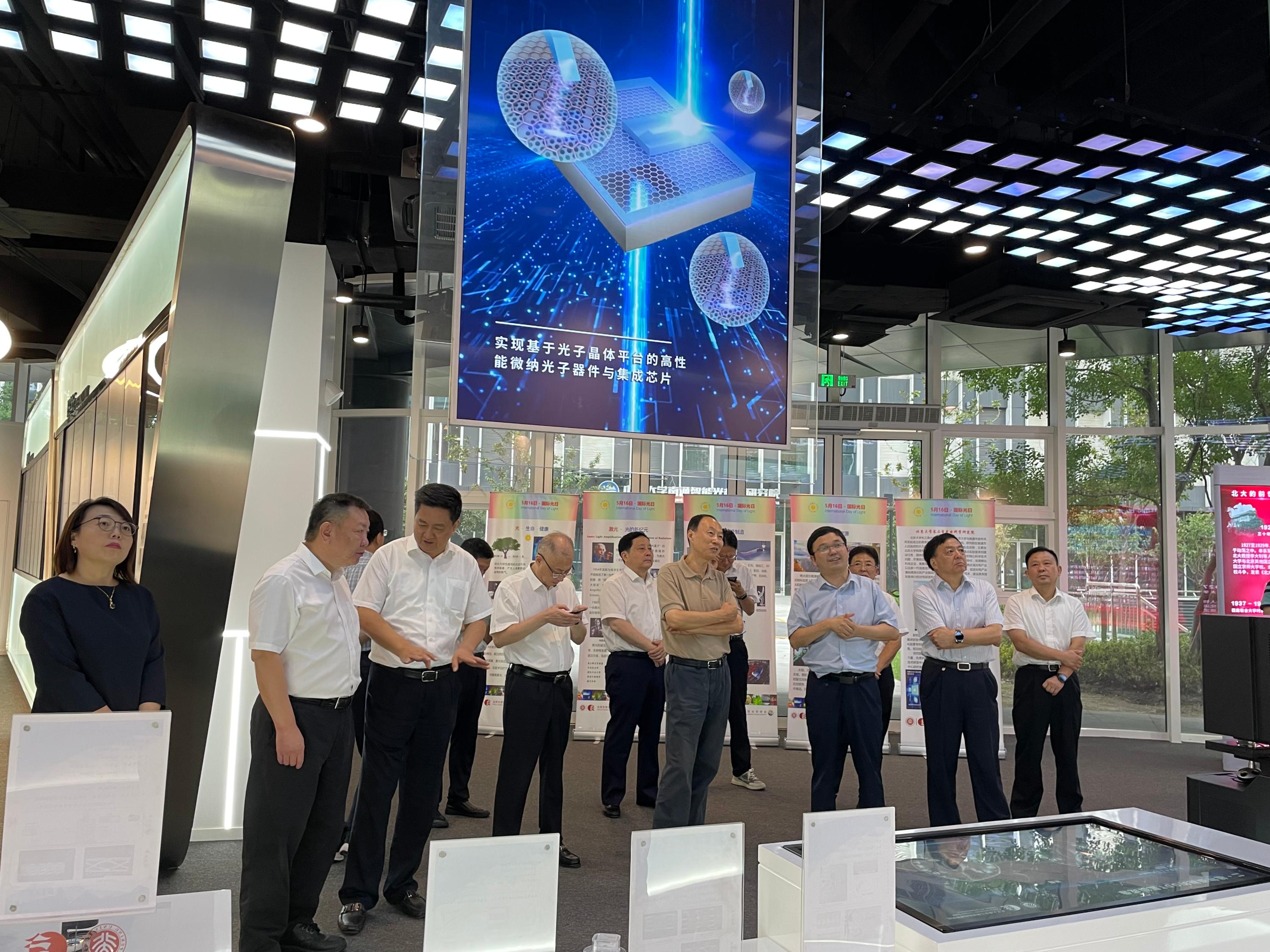在展厅,孙泉对调研组的到来表示欢迎,并围绕研究院的定位使命、发展历程、组织架构、人才团队、技术成果作了总体介绍,马秋林详细询问了研究院在人才队伍建设、科技成果转化、产品技术路线、设备经费来源等方面的情况。调研组还现场观摩了多模态显微镜样机、光电子芯片样品、飞秒纳米时空分辨成像研究成果模型。