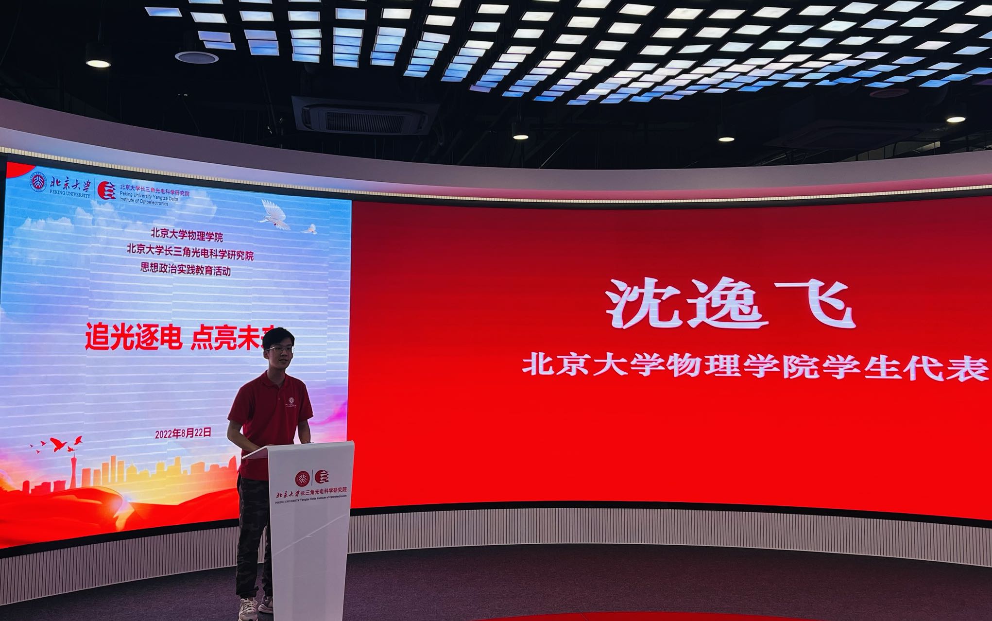 北大物理学院学生代表沈逸飞在发言时表示,在光电院的思政暑期实践是一次难得的机会,力求做到知行合一、求真力行。
