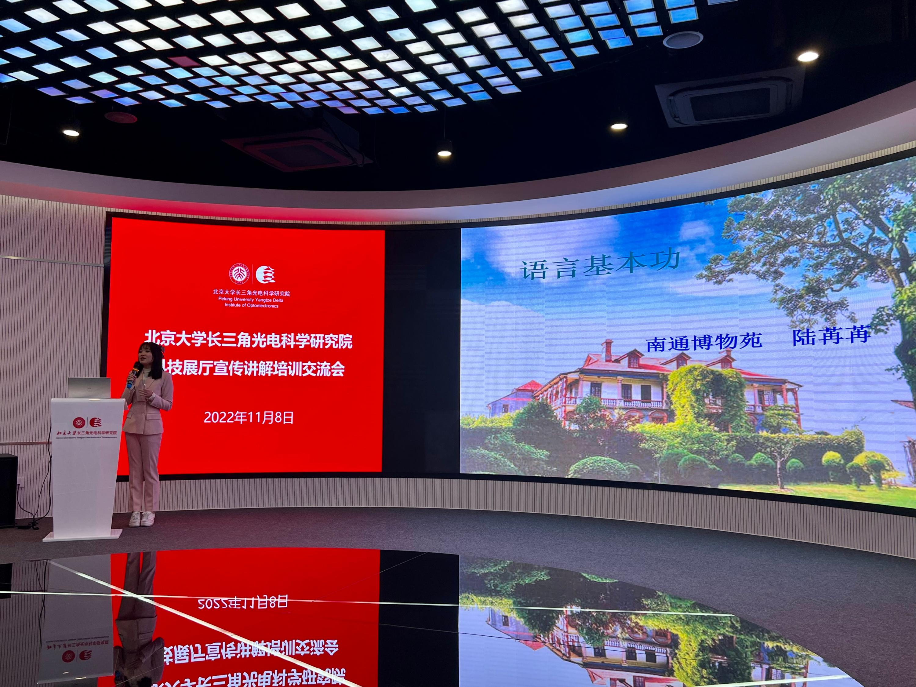 为提升研究院展厅接待讲解人员的整体业务水平与综合素质,11月8日,我院党支部联合综合管理部开展了“科技展厅宣传讲解培训交流”主题党日活动。此次活动特别邀请了南通博物苑社会教育部讲解组组长陆苒苒授课,我院副院长孙泉出席活动,服务管理人员、部分科研技术人员及园区兴创绿城员工等20余人参加活动。