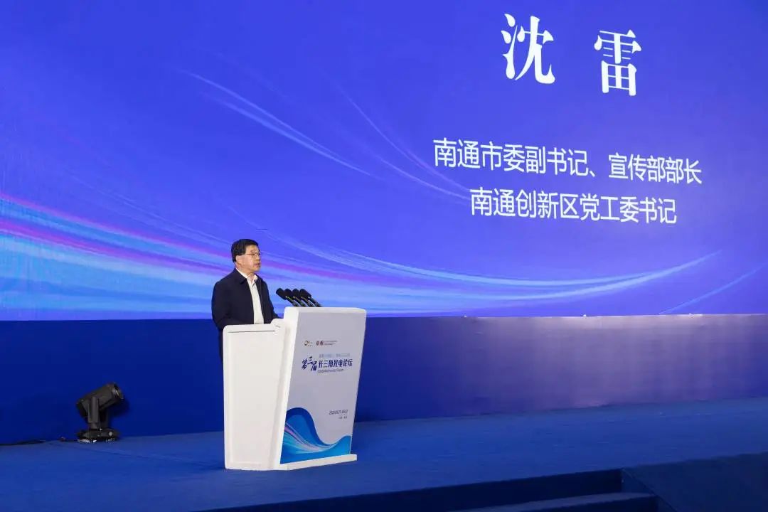 沈雷在致辞中指出,南通正加快建设更高水平国家创新型城市,以南通创新区为核心高标准建设沿江科创带,长三角光电论坛选择南通创新区作为永久会址,有力助推南通打造新一代信息技术创新高地和产业地标。近年来,南通创新区充分发挥北京大学长三角光电科学研究院技术创新引领作用,重点布局光电子等产业,光电产业集群效应凸显。