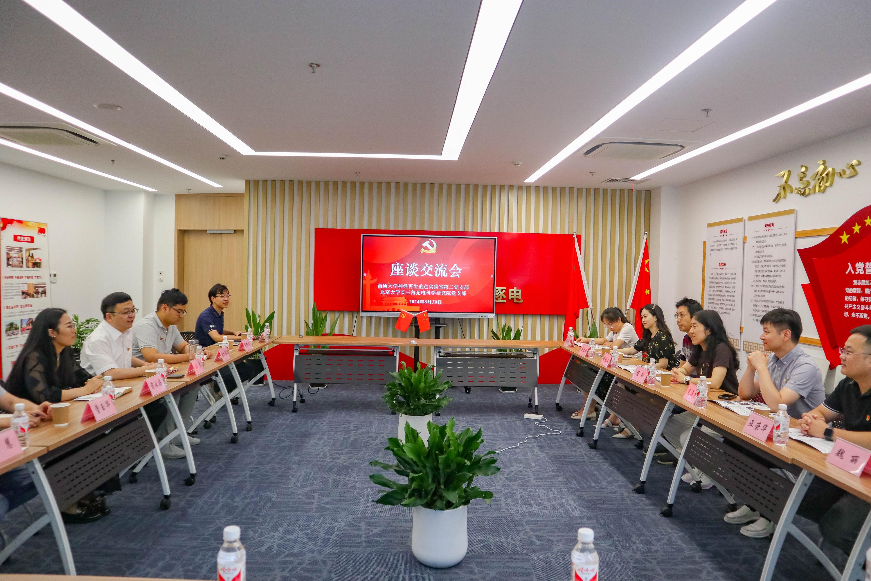 参观结束后,双方在研究院党建活动室进行座谈。座谈会上,研究院副院长、党支部书记孙泉向对方党支部的党员同志详细介绍了我院党支部发展情况及特色党建工作,并表示希望两个支部不断深化合作,以党建促业务,互学互鉴、资源共享、相互促进、共同成长,助力研究院和学校高质量发展。南通大学神经再生重点实验室第二党支部书记程琼也介绍了支部的建设情况,并表示此次党建共建活动具有重要意义和作用,既促进了双方的交流,又增进了友谊,希望双方能以此次活动为契机,共同探索创新党建工作的新思路,共同推动党建工作与业务工作深度融合,实现互利共赢。