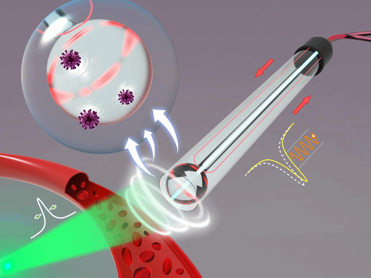 微纳光学精准检测研究室研发的微腔超声探测器,采用探针化、全封装的方案,微腔尺寸在百微米左右,具有超高探测灵敏度。