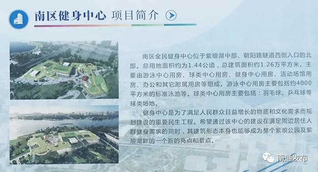 文化体育类项目1个,为南区健身中心,总投资1亿元。