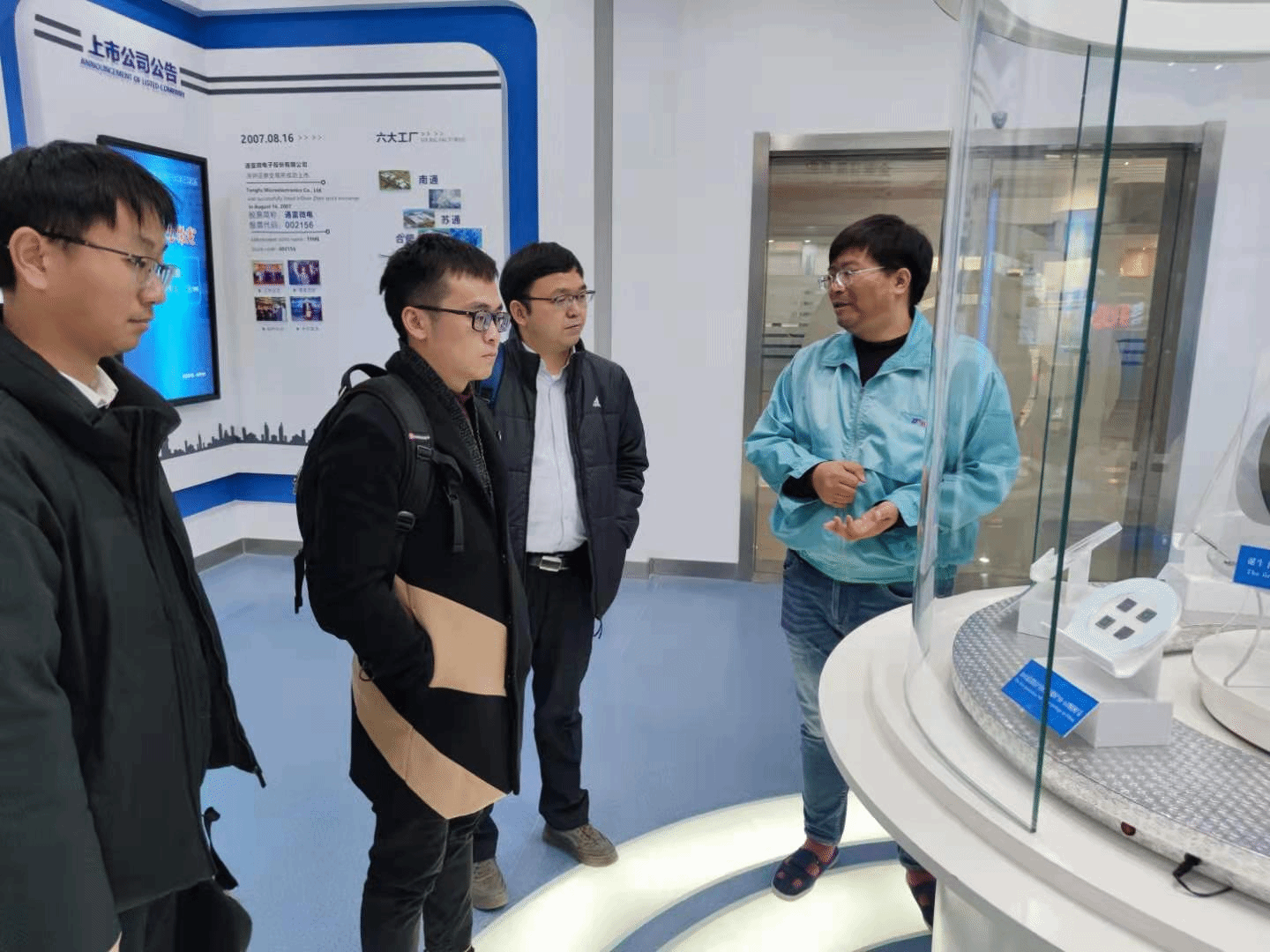 我院一行在通富微电总裁特助、公共事务办常务副主任吴华和公共事务办主任助理缪小勇的带领下参观了通富微电的科技展厅,了解了通富微电的发展历程、业务发展及产业链布局等情况。随后双方举行座谈会,孙泉副院长介绍了我院的基本情况,杨丰赫博士介绍了硅基光电子芯片及其封装技术。双方交流了硅基光芯片的封测技术,探讨了在通用封测平台、人才联合培养、项目联合申报、实验室共建等方面的合作可能性;双方表示希望继续保持接触,进一步加强沟通,就潜在合作方向进行更深层次的探讨。