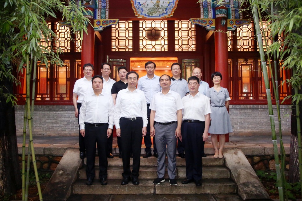 2022年7月4日上午,南通市委书记王晖一行访问北京大学。北京大学校长、中国科学院院士龚旗煌在临湖轩会见王晖一行。