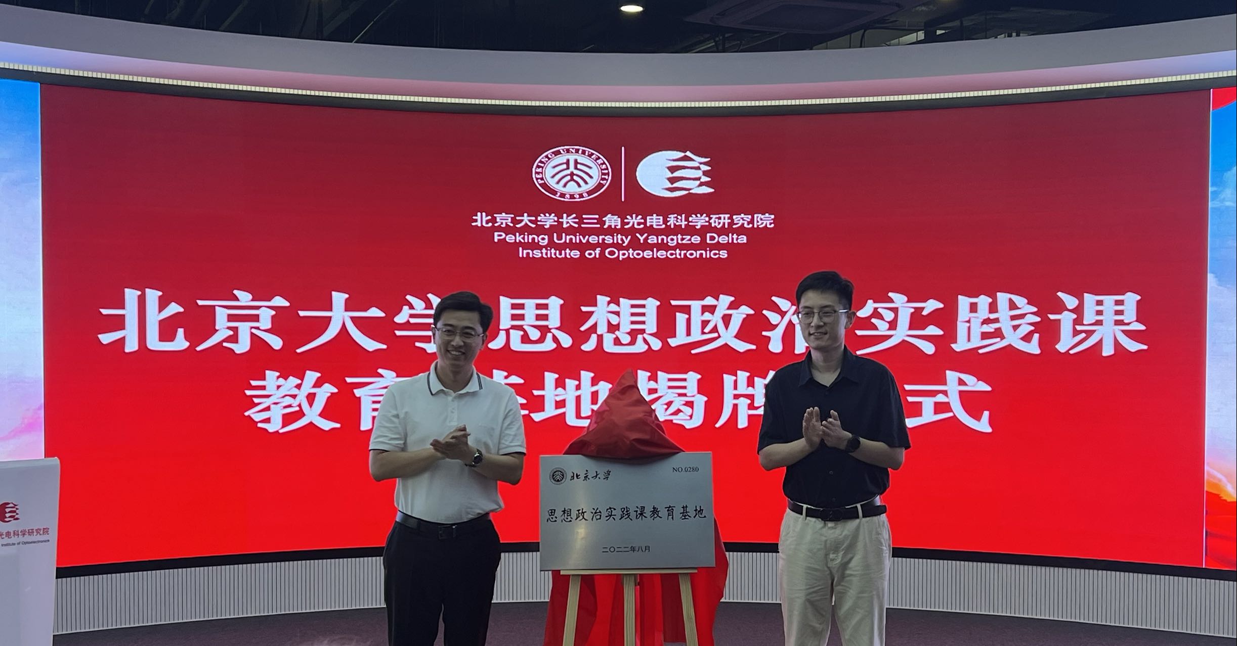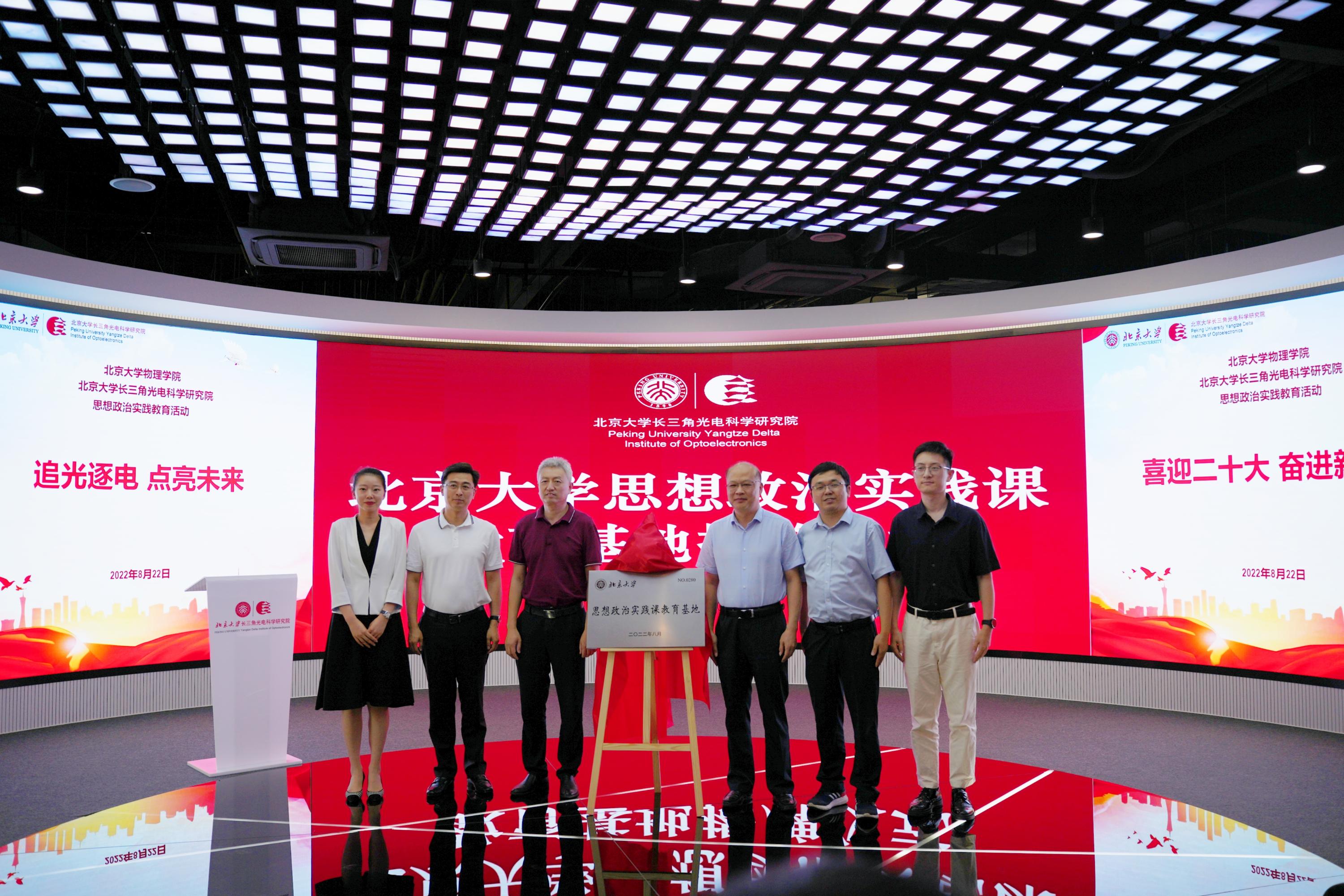8月22日下午,北京大学思想政治实践课教育基地揭牌仪式在我院成功举行。南通创新区党工委委员、纪工委书记、通创办副主任严建林,南通市中央创新区建设投资有限公司党委副书记、总经理戴峰,南通高等研究院有限公司副总经理丁佳圆受邀出席揭牌仪式,北京大学物理学院党委副书记、我院院长李焱,北京大学物理学院团委书记(实践团指导教师)张帆参加活动。我院副院长、党支部书记孙泉主持揭牌仪式。