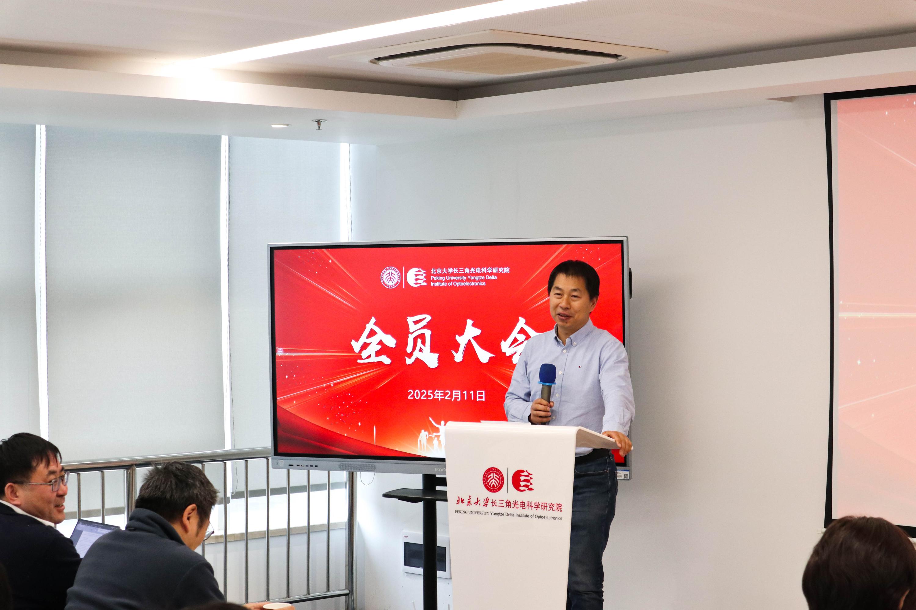 会议期间,研究院还召开了全员大会和技术交流会。全员大会上,院领导发表动员讲话。院长刘运全指出当下全球光电产业迅速发展,唯有持续创新,不断推动技术成果转化才能赢得发展的主动权,并对全体员工提出殷切希望,希望大家能在研究院工作过程中实现自我价值,在新一届领导班子的带领下再接再厉,助力研究院发展迈向更高台阶。