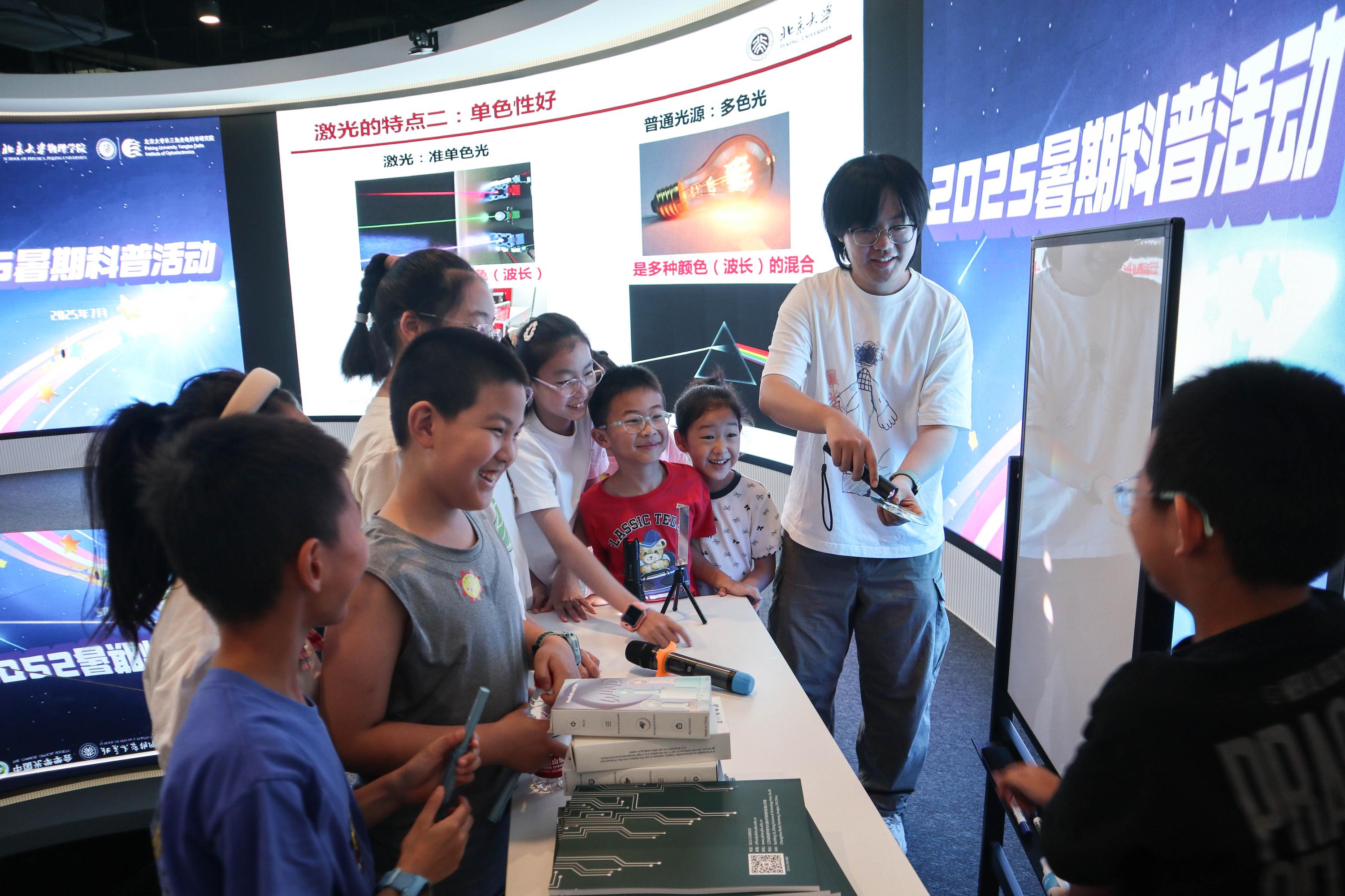 当夏日的蝉鸣与探索的好奇撞个满怀,光电院2025年暑期科普活动如期而至。今年,光电院再度携手中国光学学会、北京大学物理学院为孩子们奉上了一场兼具知识深度与互动趣味的暑期科普盛宴,助力孩子们走近光与电的科学世界,培养对科学的兴趣。