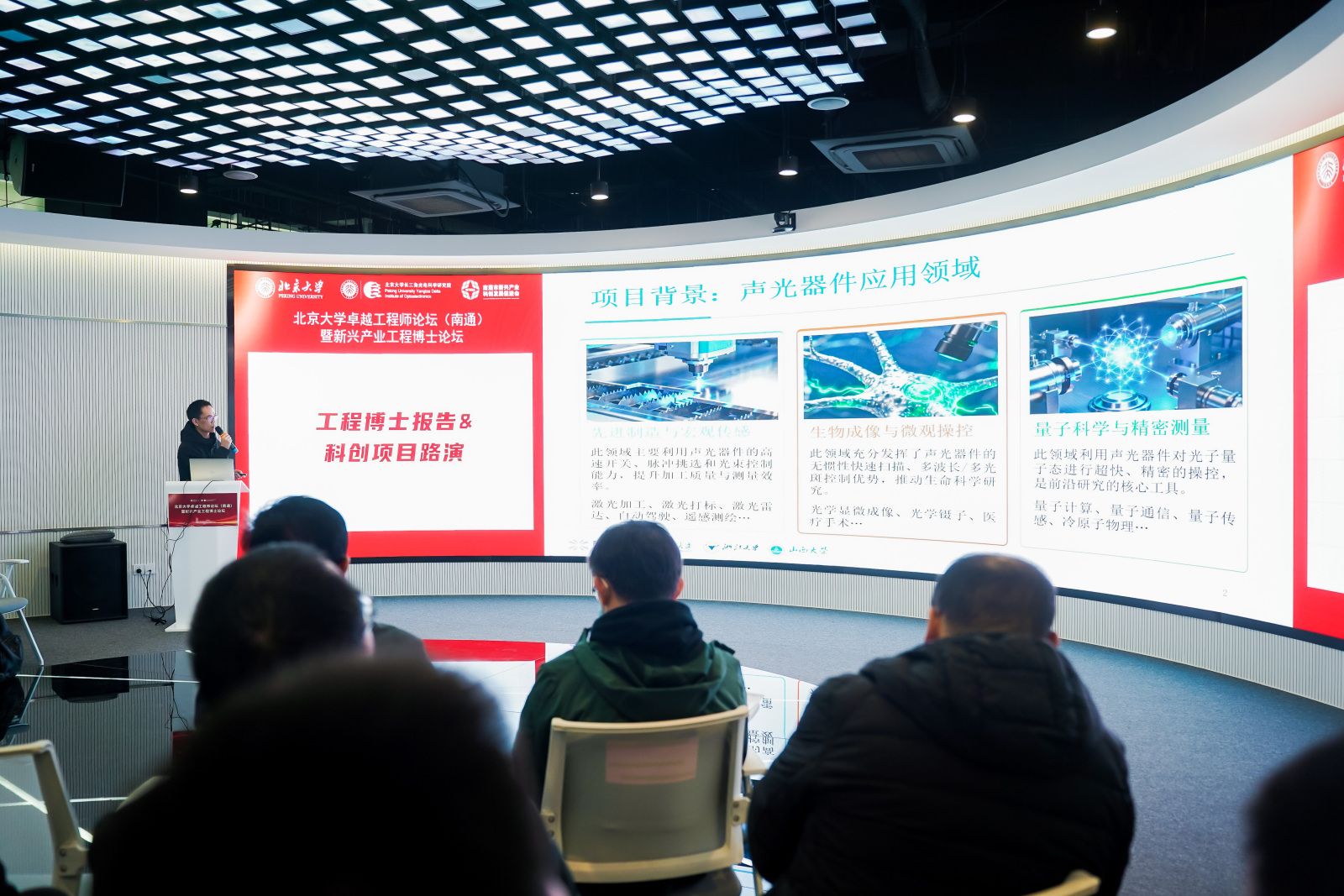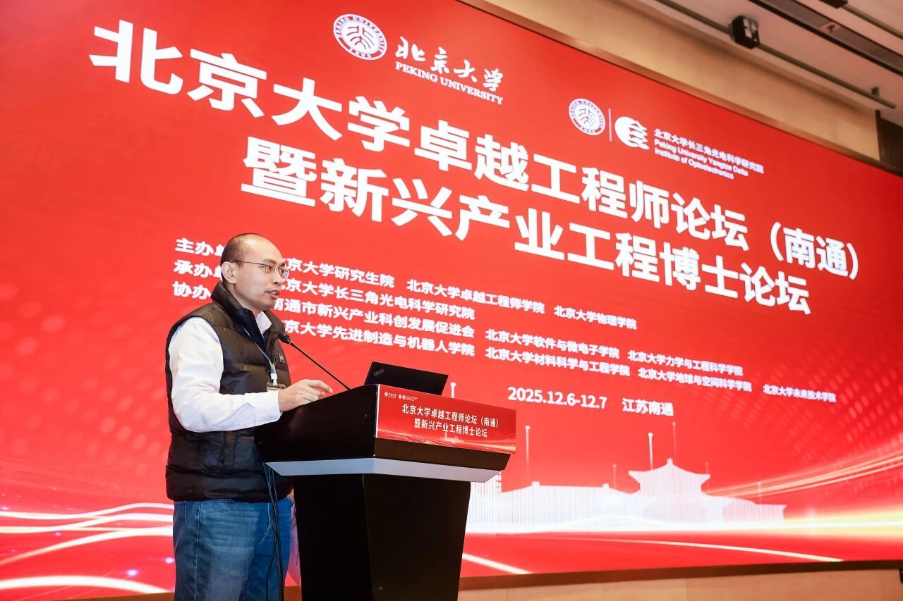 2025年12月6日,北京大学卓越工程师论坛(南通)暨新兴产业工程博士论坛在南通创新区隆重举行。本次活动由北京大学研究生院、北京大学卓越工程师学院、北京大学物理学院主办,北京大学长三角光电科学研究院承办,南通市新兴产业科创发展促进会、北京大学软件与微电子学院、北京大学力学与工程科学学院、北京大学先进制造与机器人学院、北京大学材料科学与工程学院、北京大学地球与空间科学学院、北京大学未来技术学院协办。