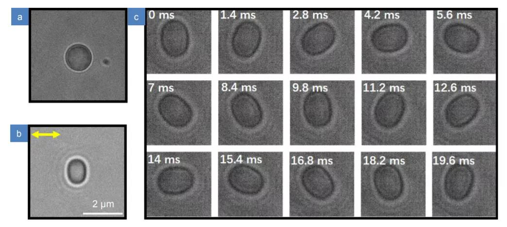 此外,他们还将这种偏振调控技术用于控制颗粒旋转,实现了双折射颗粒转速的精确电学控制。相比于单波长圆偏振光驱动颗粒旋转的传统方法,这种新的颗粒旋转控制方法不仅实现了颗粒转速的完全电学控制,而且对光强扰动不敏感、具有更高的稳定性,在光驱微马达,光控微流体等领域具有重要应用前景。