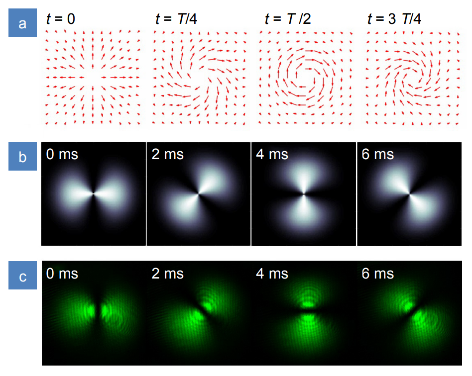 图2 利用涡旋半波片将偏振方向旋转的线偏振光转化为动态柱矢量光场