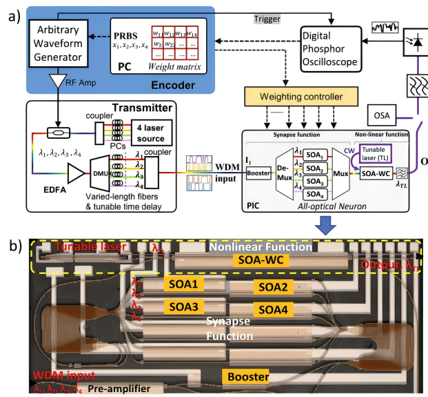 SOA在光计算领域扮演着重要且独特的角色,它利用其独特的光增益和快速非线性效应,为构建全光逻辑门、高速光开关、波长转换器、光缓存器等核心计算单元提供了物理基础。虽然面临功耗、噪声和集成挑战,但其高速、可集成的特性使其在追求超高速、低延迟、大带宽的未来光计算系统中具有巨大的应用潜力和研究价值。随着材料、器件设计和集成工艺的不断进步,SOA有望在更复杂、更实用的光处理器和光加速器中发挥核心作用。