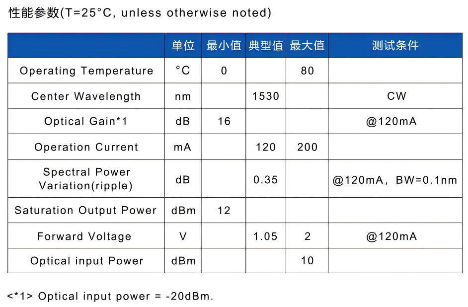 本产品为基于半导体光放大器(SOA) 芯片进行标准化蝶形封装后,形成具有小尺寸、低噪声、高灵敏度的光放大器,可广泛应用于光通信、光传感、光计算等领域。